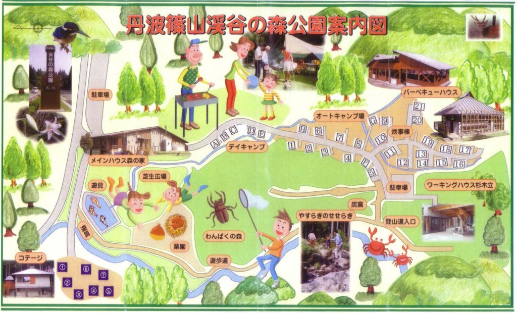 GoogleMap等で「丹波篠山渓谷の森公園」と検索しご来園ください。